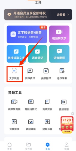 3、從功能列表中選擇并點擊“文字識別”這一工具,進入相關操作界面。