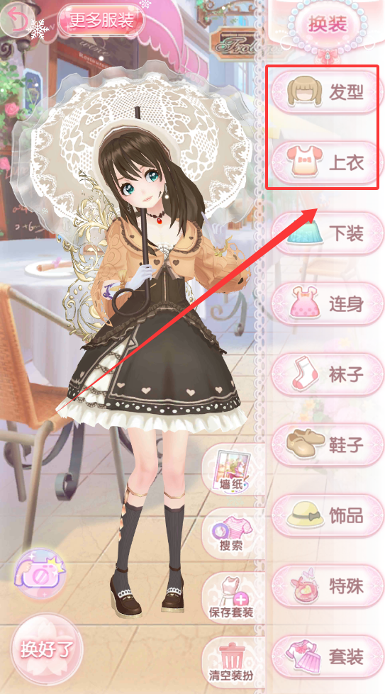 2、進入換裝界面后,你可以看到發型、上衣、下裝等詳細的分類。通過左右滑動或點擊分類標簽,能快速找到想要的服飾。